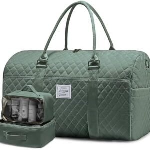 Product Description 【TRAVEL TOTE BAG WITH SHOE COMPARTMENT+STORAGE BAG+FREE SEPERATE TOILETRY BAG】: 1. comes with a $23 storage bag 2. comes with a $15 toiletry bag 3. comes with adjustable & detachable sling strap and handles. This is LOVEVOOK’s latest upgrade combination travel duffel bag set: adds packing cube &…