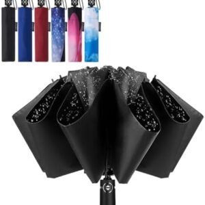 From the brand Mini Travel Umbrellas Compact & Golf Umbrellas [NEW INVERTED DESIGN UMBRELLA] – This compact reverse umbrella features a unique inside out reverse folding frame that’s windproof for long lasting durability. The inverted folding technology makes it easy to enter and exit cars, doors, and other tight spaces…