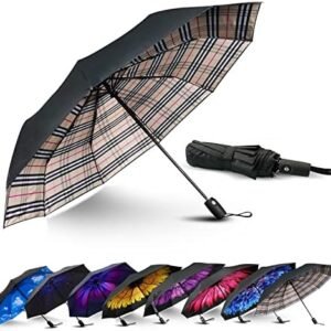 QUALITY UMBRELLA STAND — Umbrella has 10 reinforced fibreglass ribs and a strong metal frame, making it withstand strong winds, heavy rain and bad weather.WINDPROOF & WATERPROOF — The umbrella cover is made of pongee with strong resistance that is quick-drying, waterproof, and resistant to ultraviolet rays.AUTO OPEN/CLOSE — Travel…