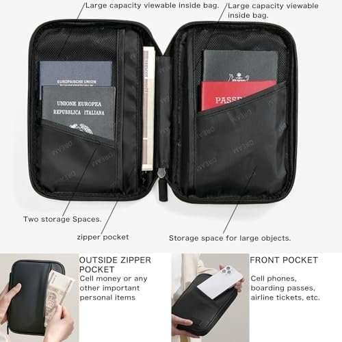 WIDE APPLICATIONS: This travel document holder is a travel accessories for women and men. Suitable for family travel, camping, business travel, etc. Keep everything in one place, neat and organized. Make your journey comfortable and wonderful.Extremely useful for airports, crowded markets, buses, trains, sporting events and festivals.